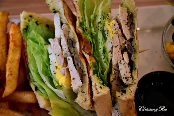 ▲ 三明治的部分 , 則是 鮮奶厚片土司 , 有水煮蛋 / 薯泥 / 生菜 / 些許芥末醬