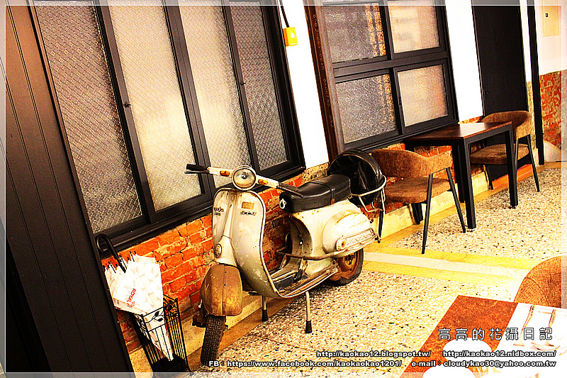 一樓還有擺放一輛看起來很有年紀的偉士牌機車,