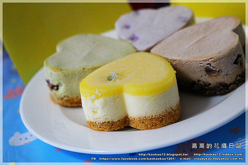 原味重乳酪、藍莓重乳酪、巧克力重乳酪、檸檬重乳酪及抹茶紅豆重乳酪,