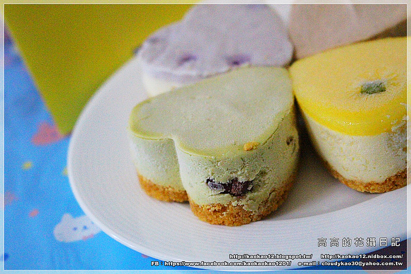 這是小幸運Mix綜合重乳酪《檸檬+抹茶紅豆+巧克力+藍莓》,