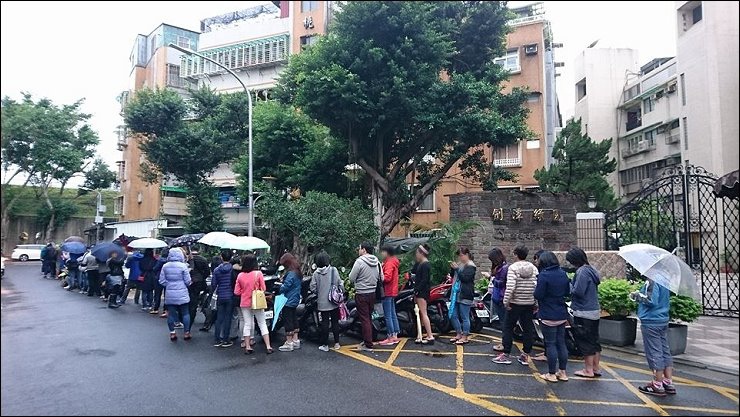 2016/11/27實戰更新→早上八點才開賣,透早還沒七點到宣原門口就排成這樣,而且還是微微陰雨日,打卡時有網友留言說七點來排隊,站定後十分鐘,店家就派人在隊伍後方說今日沒有了,看來今年至少要提早一小時來排隊比較保險。