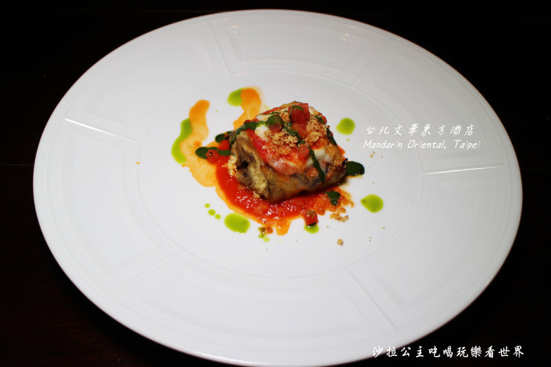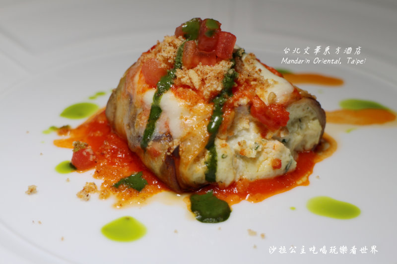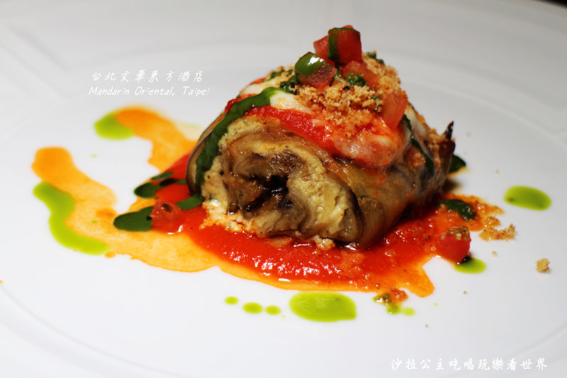 這道菜可以看到茄子捲入一層又一層的起司,有瑞卡達起司、羊奶起司、蛋黃做成的起司餡