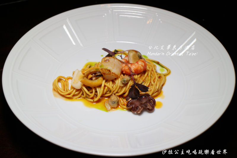 這道義大利麵一上桌鮮味馬上飄出,裡面有用橄欖油爆香過的鯷魚,小章魚、中卷、明蝦、蟹肉、蛤蜊...等海鮮,在淋上白酒拌炒,等湯汁略收乾後,再放入巴西里及番茄,最後再加入義大利麵拌勻,就可以上桌囉~~