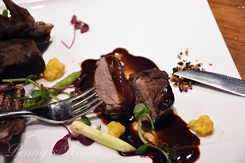 小羔羊是採用羊菲力的部位,前置作業先用了濃縮咖啡和香蕉皮來醃製!!!