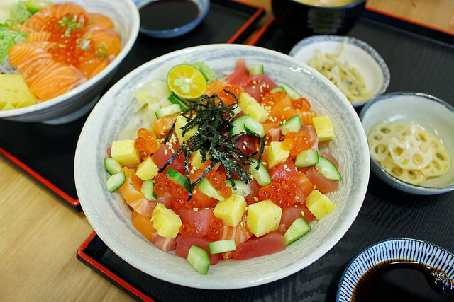 壽司丼的醋飯酸度適中,米飯粒粒分明且稍微黏牙有嚼勁,雖不如正統日式料理壽司醋飯一般酸味明顯,但卻是適合台灣人習慣口味的調味,用心程度可見一斑。