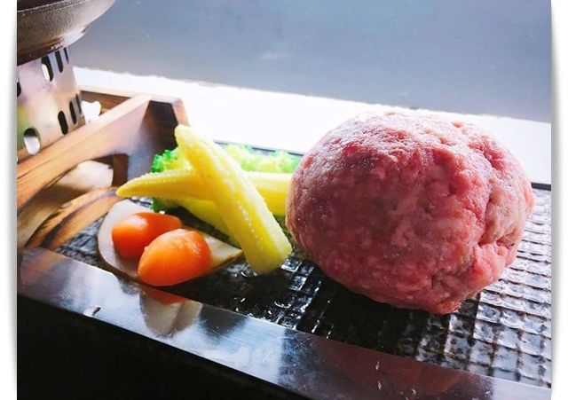美國和牛搭配choice等級原肉製作而成的牛肉球,一旁有些許蔬菜。