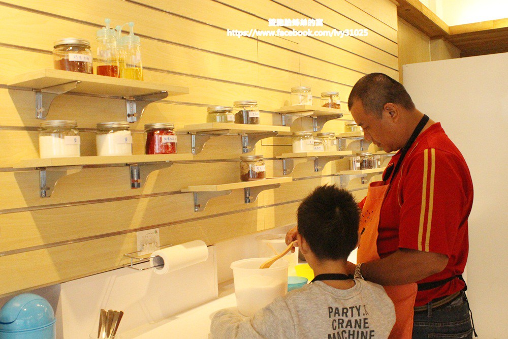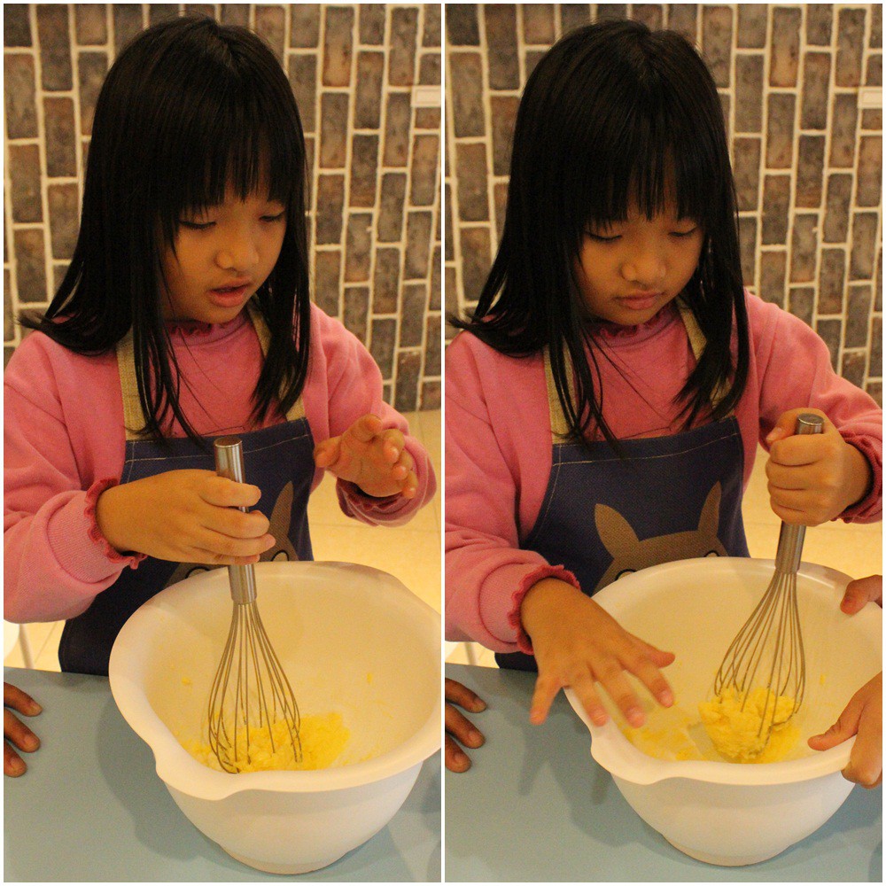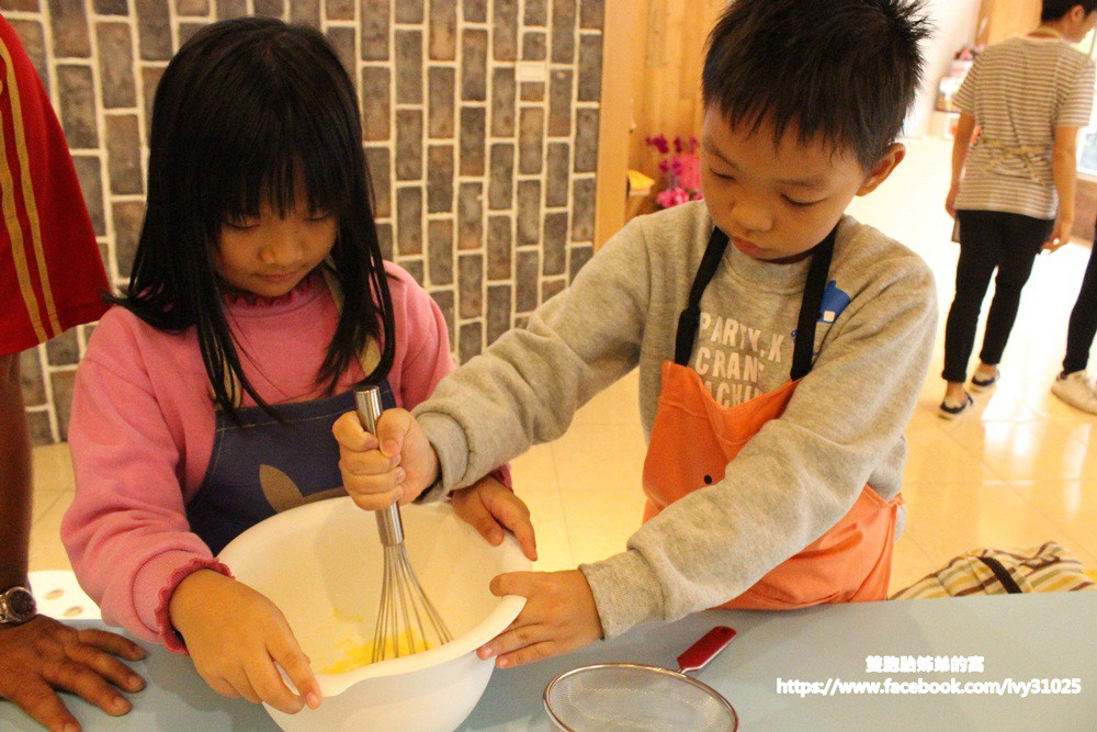 兩姐弟一塊動手攪拌,來這邊就是要讓孩子自己動手做,