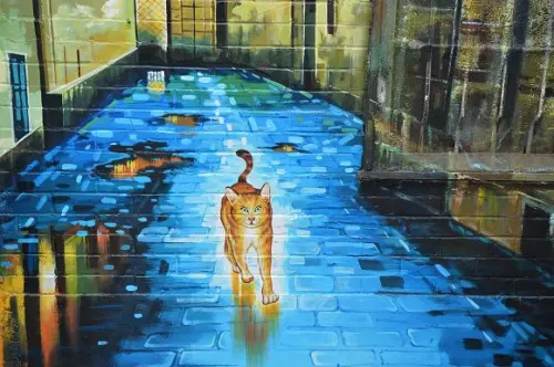 立體彩繪牆裡小喵咪,超萌表情讓旅人們都融化啦