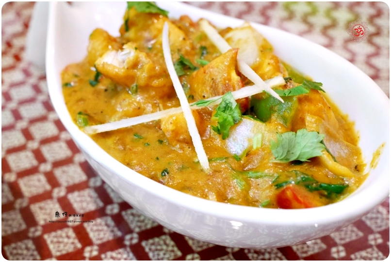 用多種印度香料醃漬,當中加入些許優格調味故嚐起來有點酸味