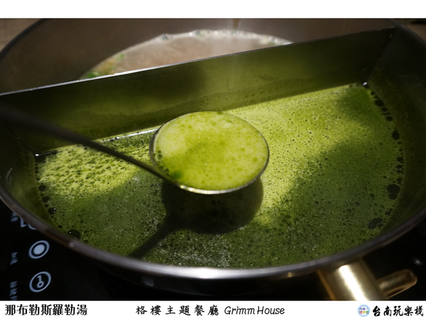 最近常常品嘗到羅勒類型的餐點,比如義大利麵或者焗烤,都少不了羅勒的甜香,這裡的主廚真的真的用的很粗本,上面有著厚厚的一層羅勒蓋住高湯的顏色,這一鍋是棧長喜歡的口味,他們女生比較喜歡上面的馬鈴薯風味湯。