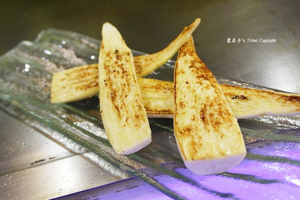 老闆招待了我們一盤香煎筊白筍,