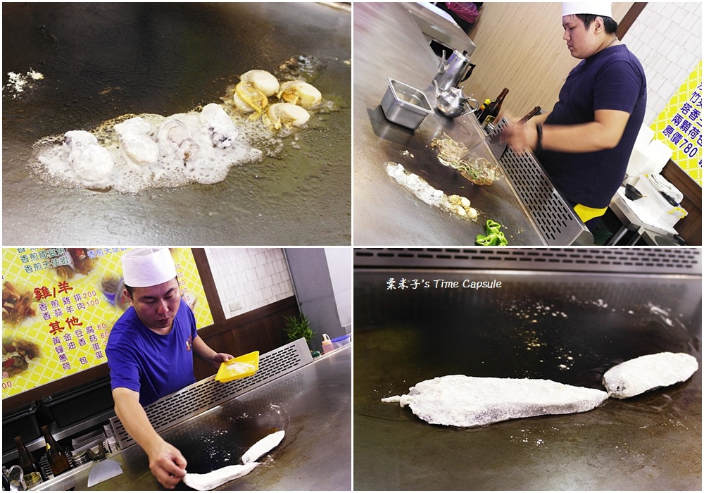 一邊是邊煎鮮蚵、扇貝邊快手炒羊肉,