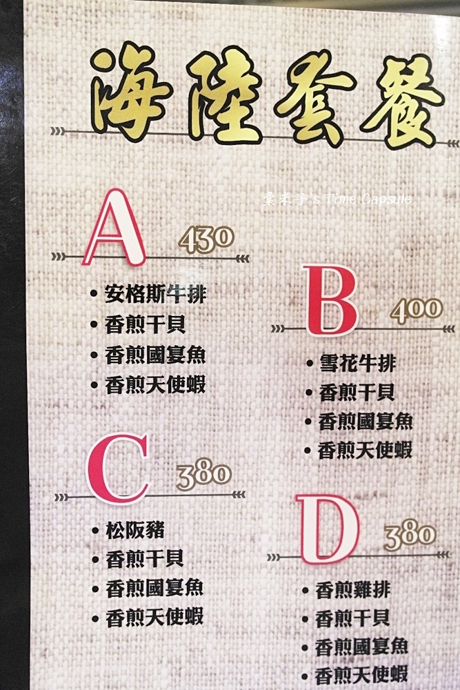 價格和餐點內容一目瞭然,