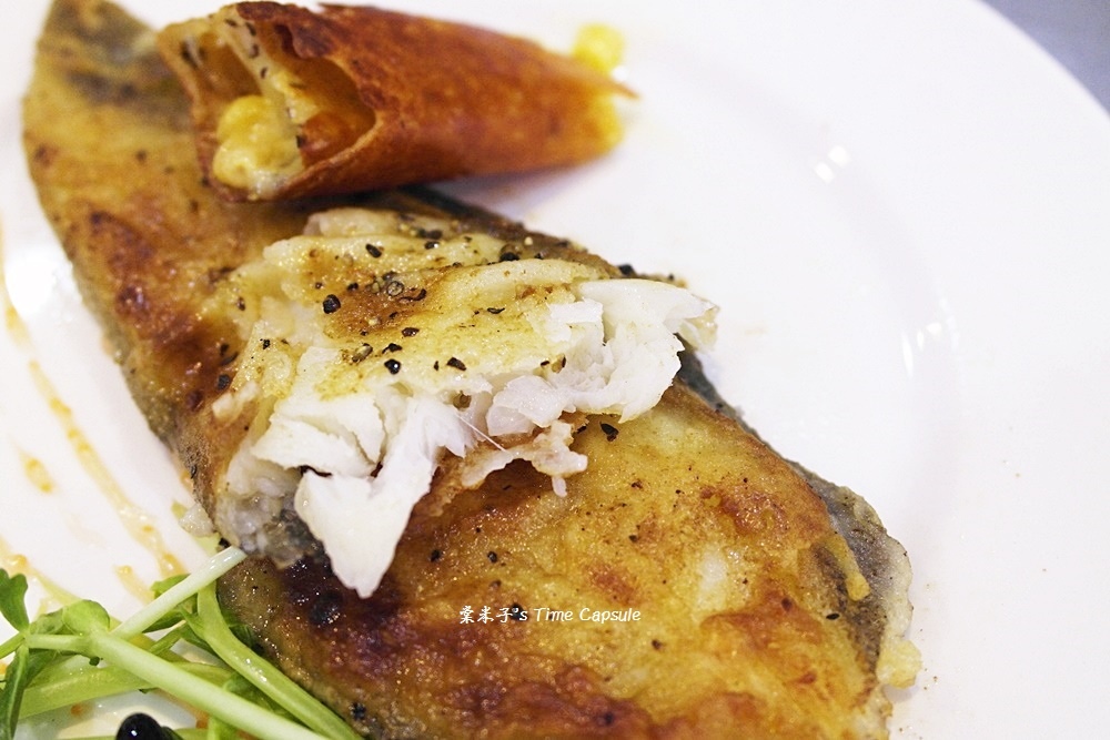 煎得赤赤的鱈魚外微酥裡面肉質卻超級鮮嫩,