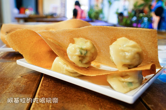 ▲轉過來一看,還真的是煎餃,經過詢問,原來那個像薄餅的東西叫做「冰花」,是可以吃的。