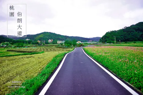 桃園大溪的大鶯路上處處是秘境,這裡人車不多,有不少單車愛好者穿梭其間,產業道路兩旁都是綠意盎然的田地,偶有美麗的花田穿插其間,