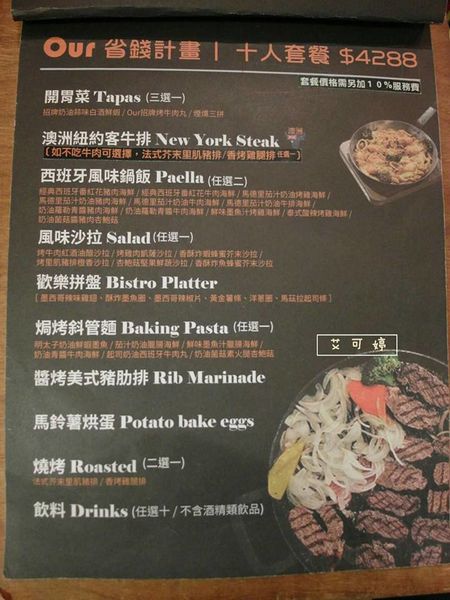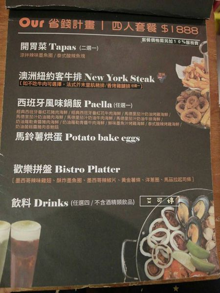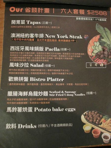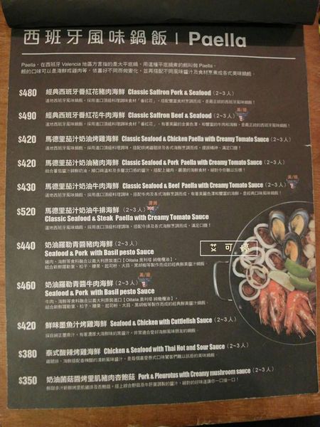 餐點部份是以西班牙、義大利、美式等無國界料理為主
