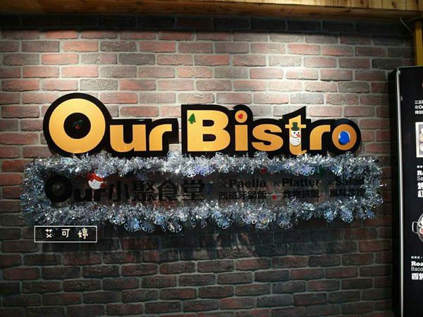 小聚食堂, ourbistro, 中壢威尼斯影城美食, 中壢美食, 西班牙小酒館餐廳, 涼拌辣味墨魚圈, 法式芥末里肌豬排, 西班牙風味鍋飯, 經典西班牙番紅花豬肉海鮮, 馬鈴薯烘蛋, 歡樂拼盤, 烤雞肉凱薩沙拉, 煙燻鮭魚三明治, 芒果奶蓋漂浮冰飲, 日式抹茶奶蓋漂浮冰飲, 朋友聚會, 家庭聚會, 生日聚會, 大份量