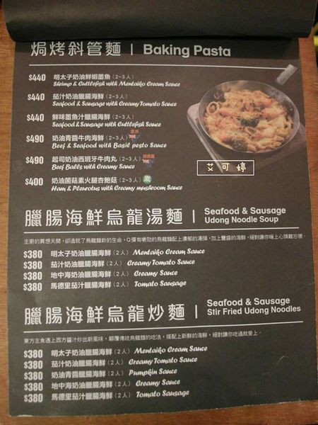 焗烤斜管麵、烏龍湯麵、烏龍炒麵