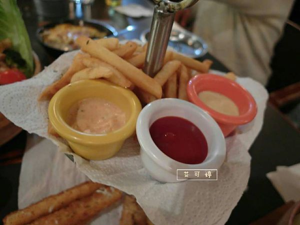 最上層附了三種醬可沾薯條