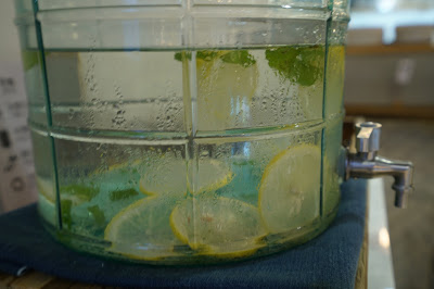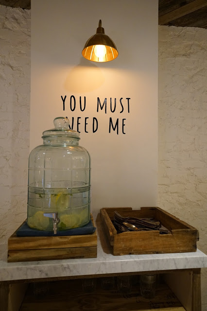 提供檸檬水與餐具的區域也很有外國風格。
