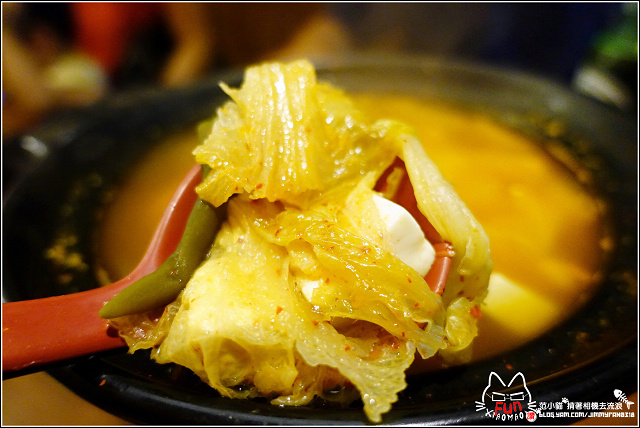 泡菜味道足卻不辣,裡頭還有嫩豆腐等食材