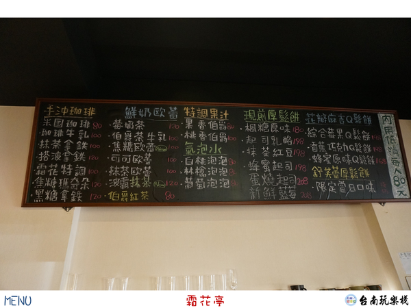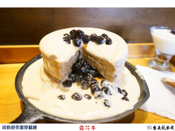 日前看了一則美食報導(報導點我)寫著【台南人氣珍奶舒芙蕾厚鬆餅!】看到字眼我是一點反應都沒有,但是看到此篇文舒芙蕾照片的一整個心動起來,因為此舒芙蕾鬆餅上頭有著滿滿的棧長喜歡的珍珠(波霸)畫面,不是鬆餅系更不是甜品控的棧長都心動了,棧長對於珍珠系列茶飲,有種著了魔般的喜歡,今天完完全全是衝著珍珠舒芙蕾來霜花亭一探究竟的。此名店霜花亭的部份,棧長本人不知道有此鬆餅店,且常經過此處卻渾然不知道這裡賣什麼,今天為了一探珍奶舒芙蕾而前往,真的是內心非常的暨期待又興奮
