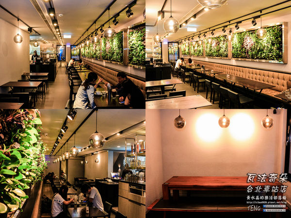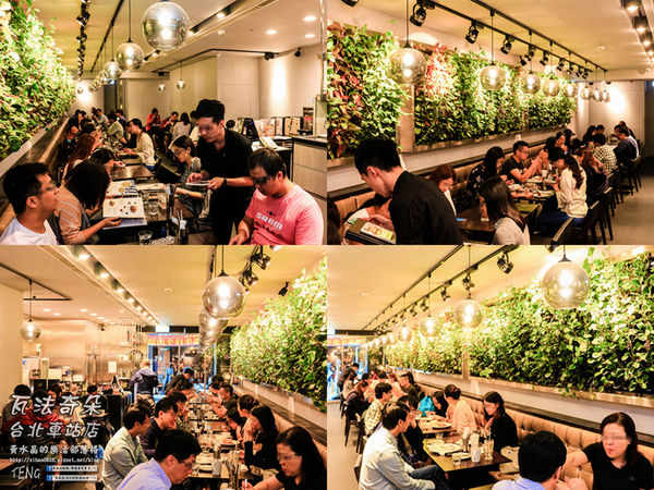 當客人都坐滿時很壯觀吧!打上燈光,後頭的植生牆就像一幅幅花草畫般。