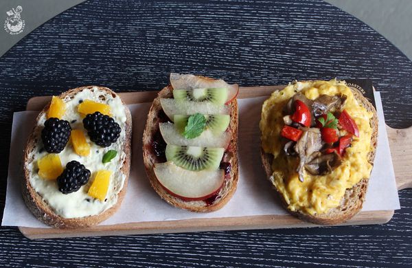 現在歐美地區很流行的Things On Toast ,此餐點菜色採取"隨機出貨",口味不固定,有甜有鹹,在外酥內軟的歐式麵包上鋪滿時令的新鮮食材而成,上菜時好比三位獨領風騷的女王華麗登場,依序排隊進入你的五臟王宮。建議若有不喜歡吃的食物,可以先詢問店員今日的女王圓舞曲有沒有出現該樣食物,避免出現的女王都不是自己的菜而點來浪費了,不被臨幸不僅三名佳麗傷心,自己的荷包也會痛心,畢竟餐點可以不吃,但餐費不可不付啊!