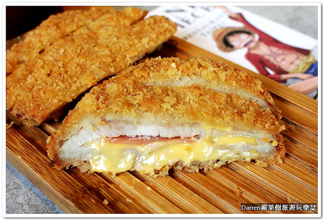這份以魯夫草帽為造型的豬排飯是店內超人氣餐點,以造型取勝草帽使用薑黃飯和蕃茄醬來做造型