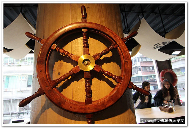 餐廳室內主要以千陽號海賊船為設計概念,從入口開始就好像進到海賊船的內部,終於通過這個走道了