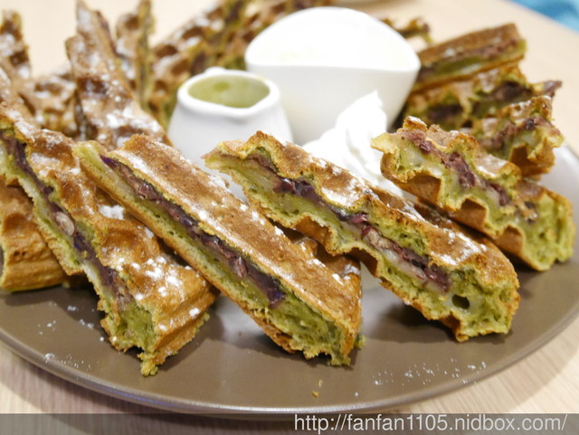 一口咬下Q感的麻糬與綿密的紅豆,抹茶風味的鬆餅,多層次的口感,讓我很滿足