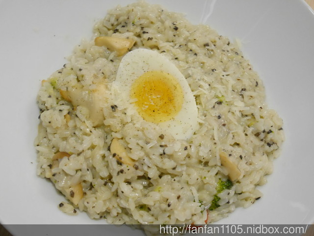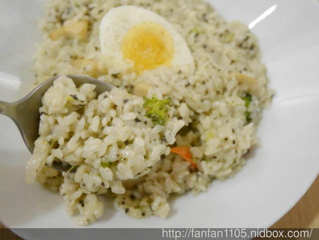 義式融合中式的元素、蹦出新口感,燉飯吃起來味道濃郁,米飯不會太軟黏,軟硬度適中,添加蔬菜及蛋感覺營養更均衡