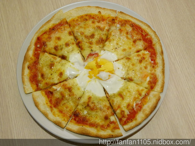 披薩的餅皮都是當天現桿現做,使用燻鮭魚、洋蔥、店家特製的紅醬、甜椒、杏鮑菇、酸豆等,最後灑上起司打上一顆蛋