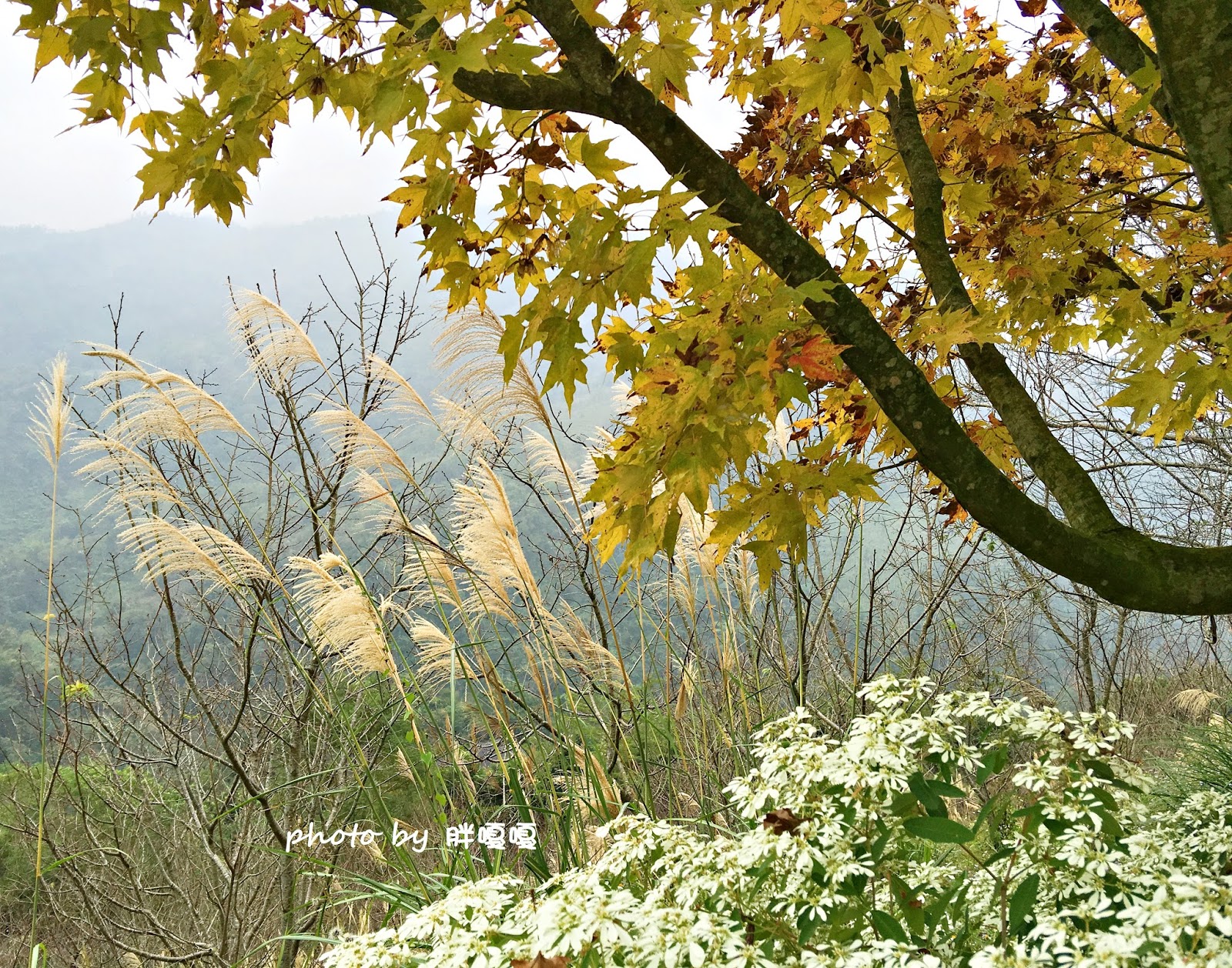 黃楓。芒草。雪白木