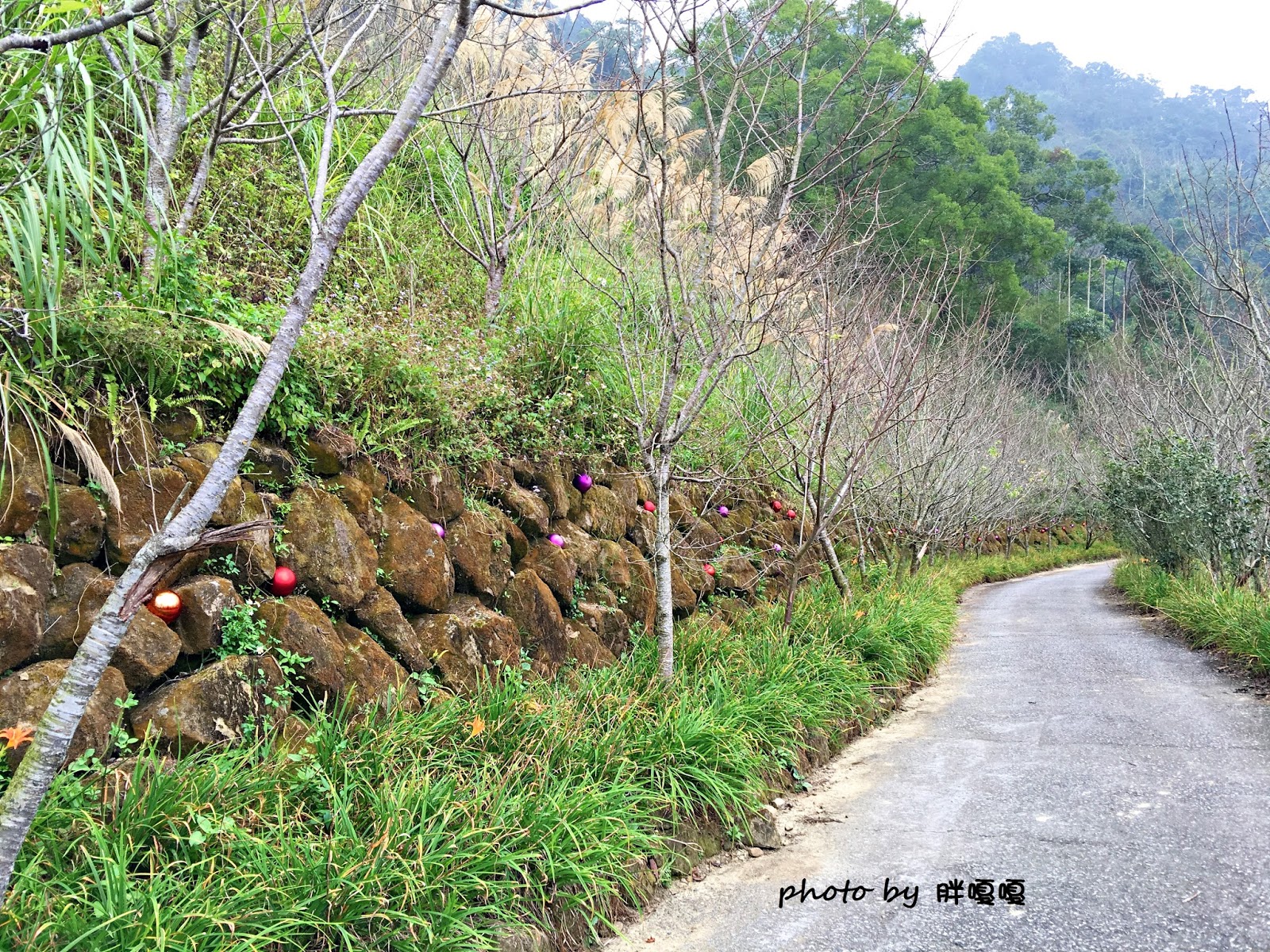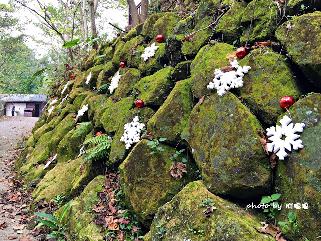 噗!!就連這漲著青苔的石牆上也有聖誕裝飾