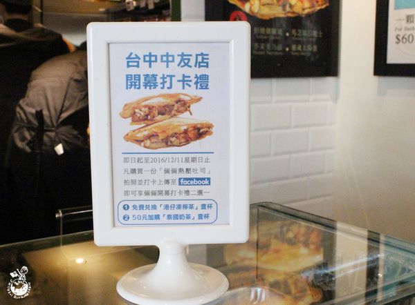 台北滿有名 、主打熱壓吐司的倆倆號來台中開分店了,就在中友百貨B棟一樓。 今天中午滑Instagram看到有人分享就決定去吃看看,因為現在至12/11買熱壓吐司送凍檸茶的優惠活動(我承認我是被凍檸茶吸引的成分比較大)