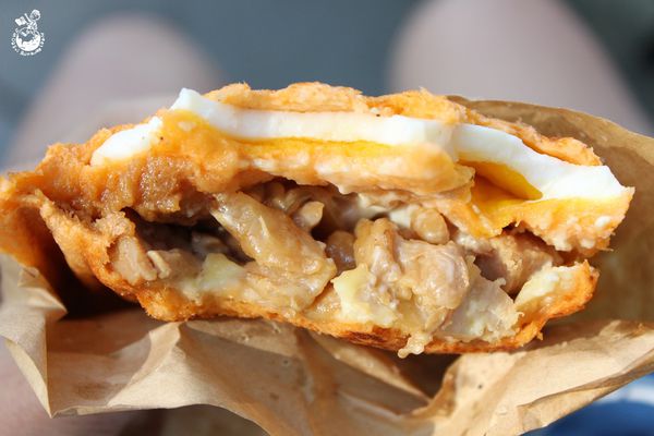 ▲內含半熟蛋 、乳酪、照燒雞腿肉以外,還有添加芥末美乃滋 。 雞肉滿嫩的口感還不錯,但和熱壓吐司裡的其他內容物加在一起的整體滋味我倒覺得還好,沒有好吃到我會想專程再來買第二次,且之後就沒有送凍檸茶了,與其花80塊外帶一份熱壓吐司,個人比較傾向至美食街好好坐下來吃一碗平價拉麵 (其實我對倆倆號的烤雞腿比較有興趣,可惜中友店沒有賣)。 總之,個人不會再訪,但有興趣的人可以去吃看看,畢竟每個人喜好的口感不一樣。