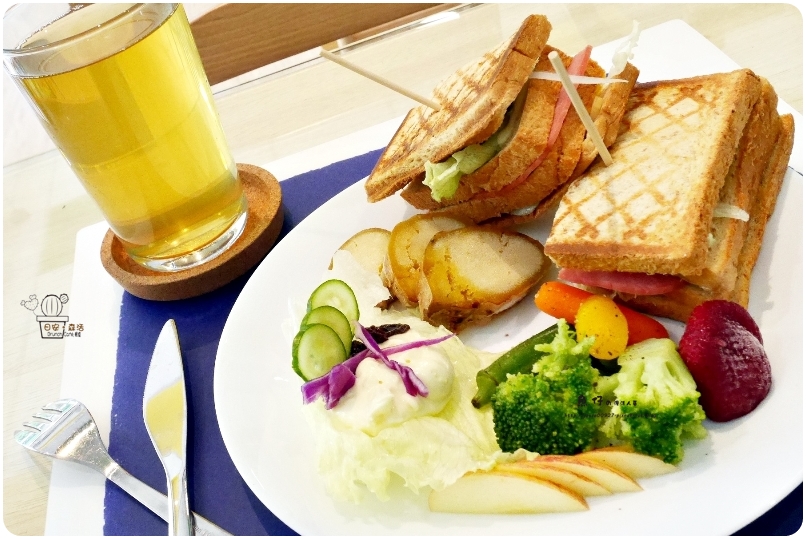 三明治套餐附有 生菜沙拉、甜心地瓜和飲料