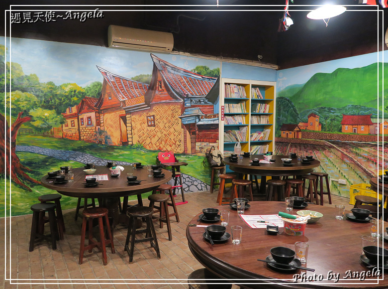 這區的屋內擺設滿混搭的!! 有學生時期的課桌椅、也有阿嬤家的四角方桌與長板凳。