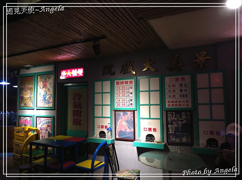 牆上有戲院電影海報、黑膠唱片,還有學校上課用的黑板。這陳設看似突兀卻又有點和諧,剛好呈現出微妙的美感。