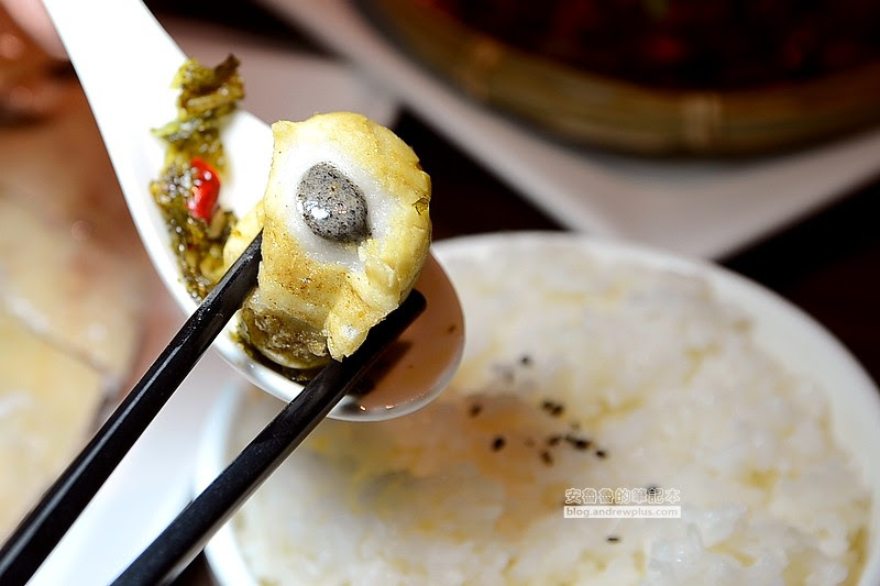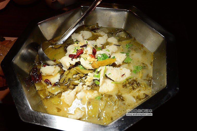 酸菜好酸,花椒和辣椒好辣,魚肉吸滿濃濃酸菜味,沒有土味,雖然酸辣好刺激味覺讓安魯魯頭頂冒火狂飆汗,但還是忍不住一口接一口!這一鍋的份量還真不少,後來我們四個人還是吃不完,所以就打包回家囉! 回家煮熱之後依舊好吃,煮鍋白飯光配這酸菜魚就可以把白飯吃完