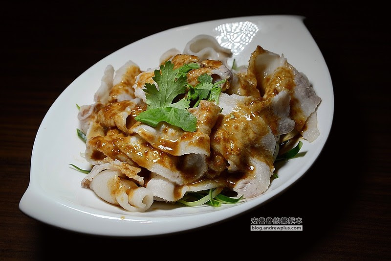 肉質肥嫩帶有彈性,沾醬有芝麻香,蒜泥味不明顯,安魯魯是覺得吃起來不會油膩啦!不過對於不吃肥肉的老佛爺來說,這個肥嫩度是他能忍受的極限了! 肉片的下面有小黃瓜,搭配香菜一起吃其實完全吃不到啥油膩感,但調味不是太重,所以芝麻香變成了很主要的味道