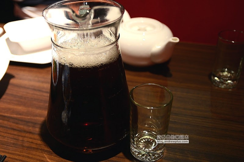 ▼入座的時候店家奉上一壺熱茶,不過因為今天我們有點烏梅汁,一開始熱茶就沒啥喝到,一直到快吃完了,才開始喝熱茶舒緩一下,值得一提的是,擺放了一段時間的熱茶當然會變涼,店員還會主動的來問是否要換一壺熱的!