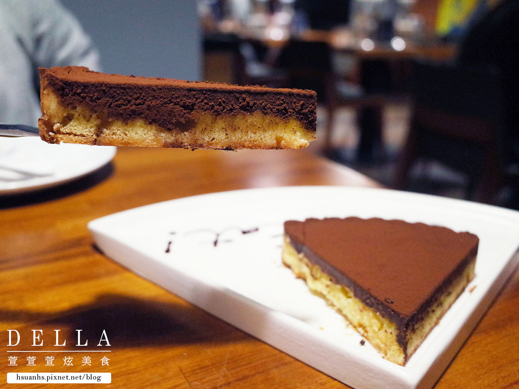 塔本身非常細緻,底層塔皮,中間是生巧克力,上層撒了厚厚一層可可粉
