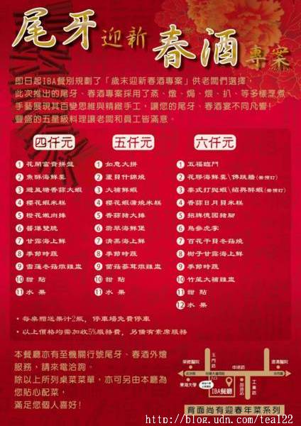 為了體諒媳婦的辛勞,近年來,許多家庭都會聽從晚輩的建議,選擇年夜飯在餐廳過,但是,存有古思維的老人家,總是無法抺去圍爐時把祖先冷清清放在家裡守空門的愧疚,那何變通一下,選一家堅持不用冷凍食材,當日一早現作,下午3:00~4:30取貨的年菜,既可熱騰騰上桌祭祖,又可一家人自在圍爐,飯後喝杯茶,等酒醒再開車。