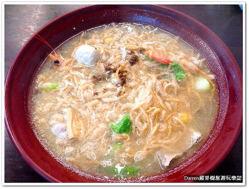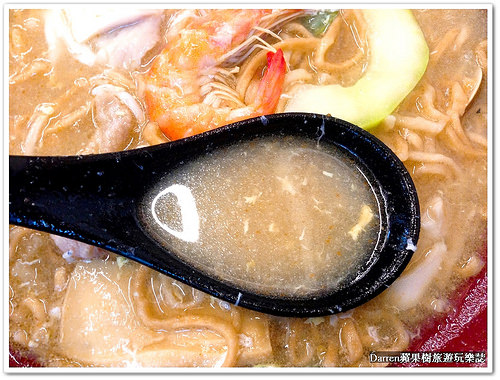 海陸什錦意麵 NT:95,端上桌很大一碗如果連湯都喝完,絕對可以吃到很飽