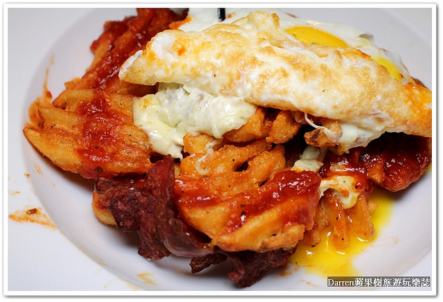 上面有半熟蛋+格子薯+培根+乳酪,一端上桌拍照然後立馬把蛋撮破蛋黃流出很邪惡吧