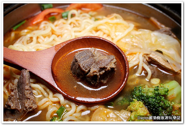 整個牛肉鍋有點類似韓式拉麵鍋加上牛肉的作法,吃拉麵就有種吃韓式料理的港覺XD