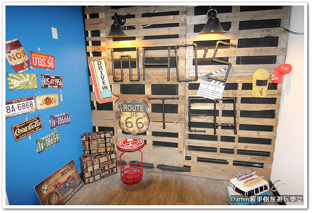 餐廳裡頭有許多旅行元素,像是飛機、旅行車、火車,下班來這用餐看到這些真得想放假了